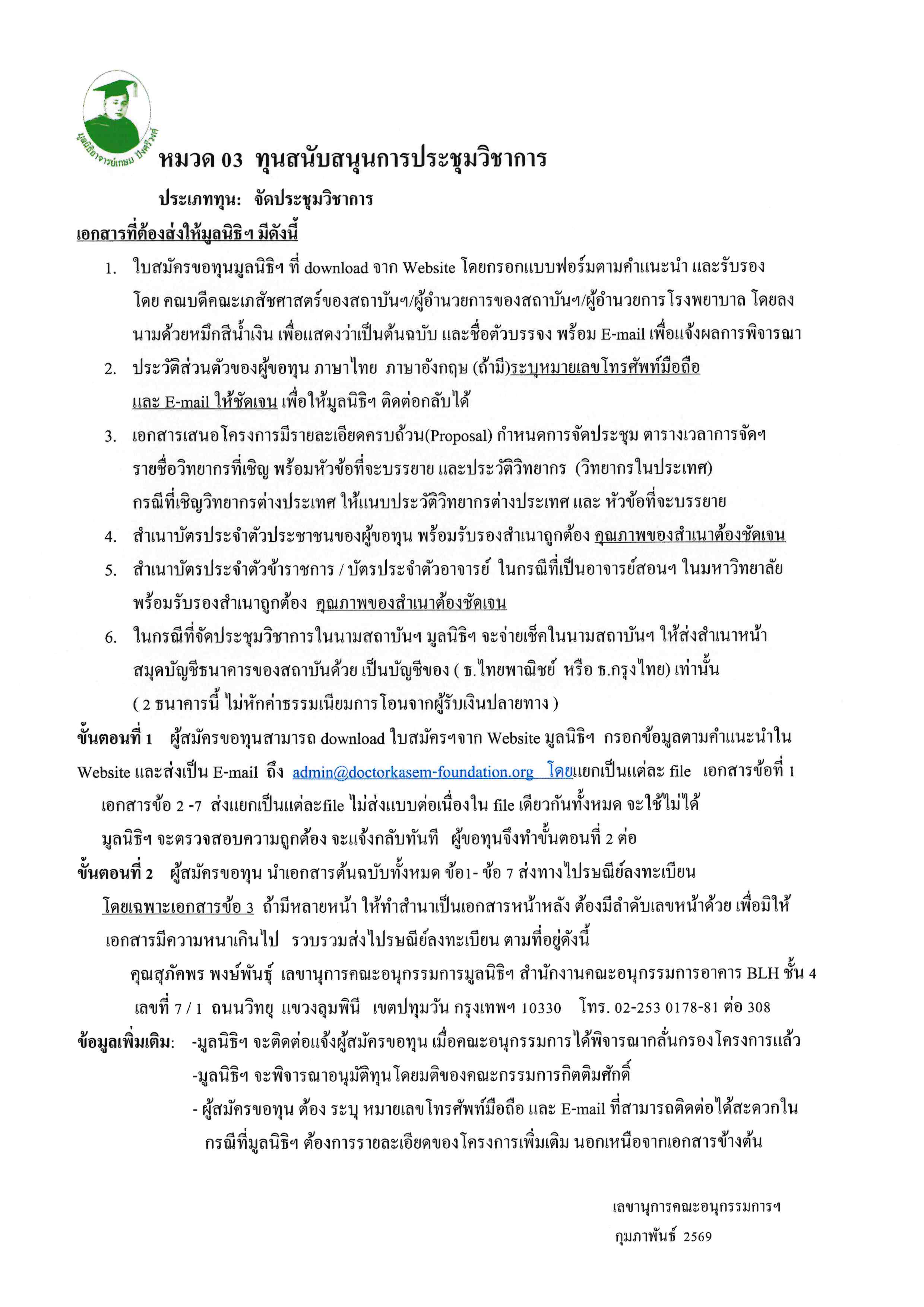 • แบบฟอร์มขอรับทุนฯ (เฉพาะทุนสนับสนุนการศึกษา ป.ตรี)